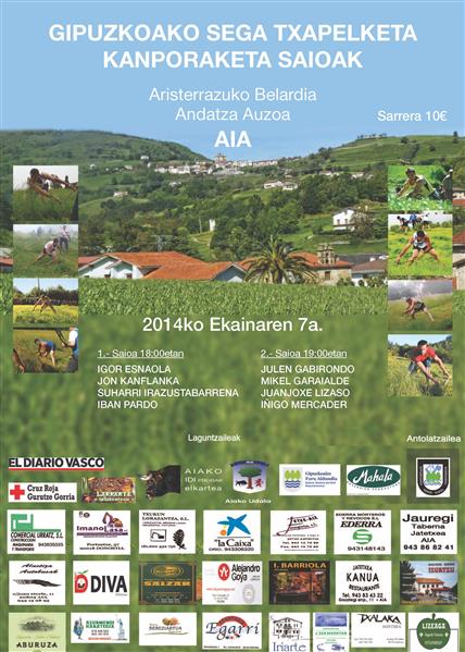 2014 urteko ohiko sega txapelketako kanporaketa ekainaren 7an ARISTERRAZUko belardian, Aiako Andatza auzoa, arratsaldez, ospatuko da eta segalariak 30 minutuko lana izango dute