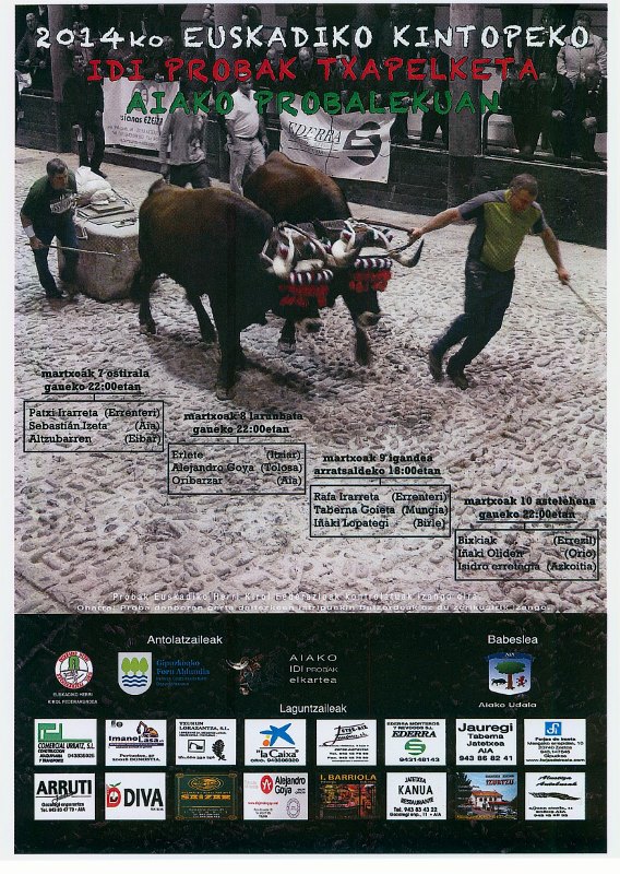 2014ko martxoaren 7-10 bitartean EUSKADIKO KINTOPEKOEN IDI DEMA TXAPELKETA ospatuko da Aiako probalekuan